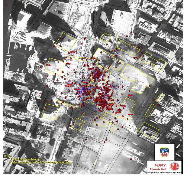 Concentration of remains found from FDNY recovery mapping inside the slurry